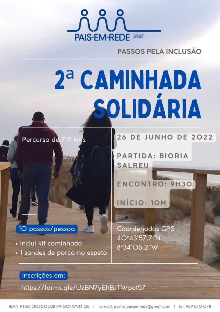 Depois do Concerto Solidário – Deixa cair o D – que se realizou no passado dia 4 de junho, o Núcleo Pais em Rede de Aveiro realiza uma caminhada solidária.